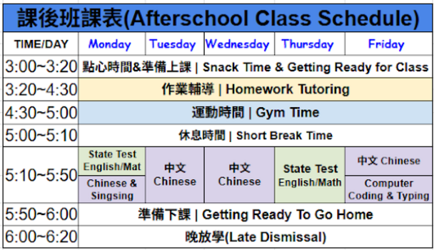 Afterschool Program Highlights :★ Well Experienced Educators & Enriching Learning Experience! ★ Chinese Classes Twice a Week ★ Basic Computer Coding & Computer Typing Class