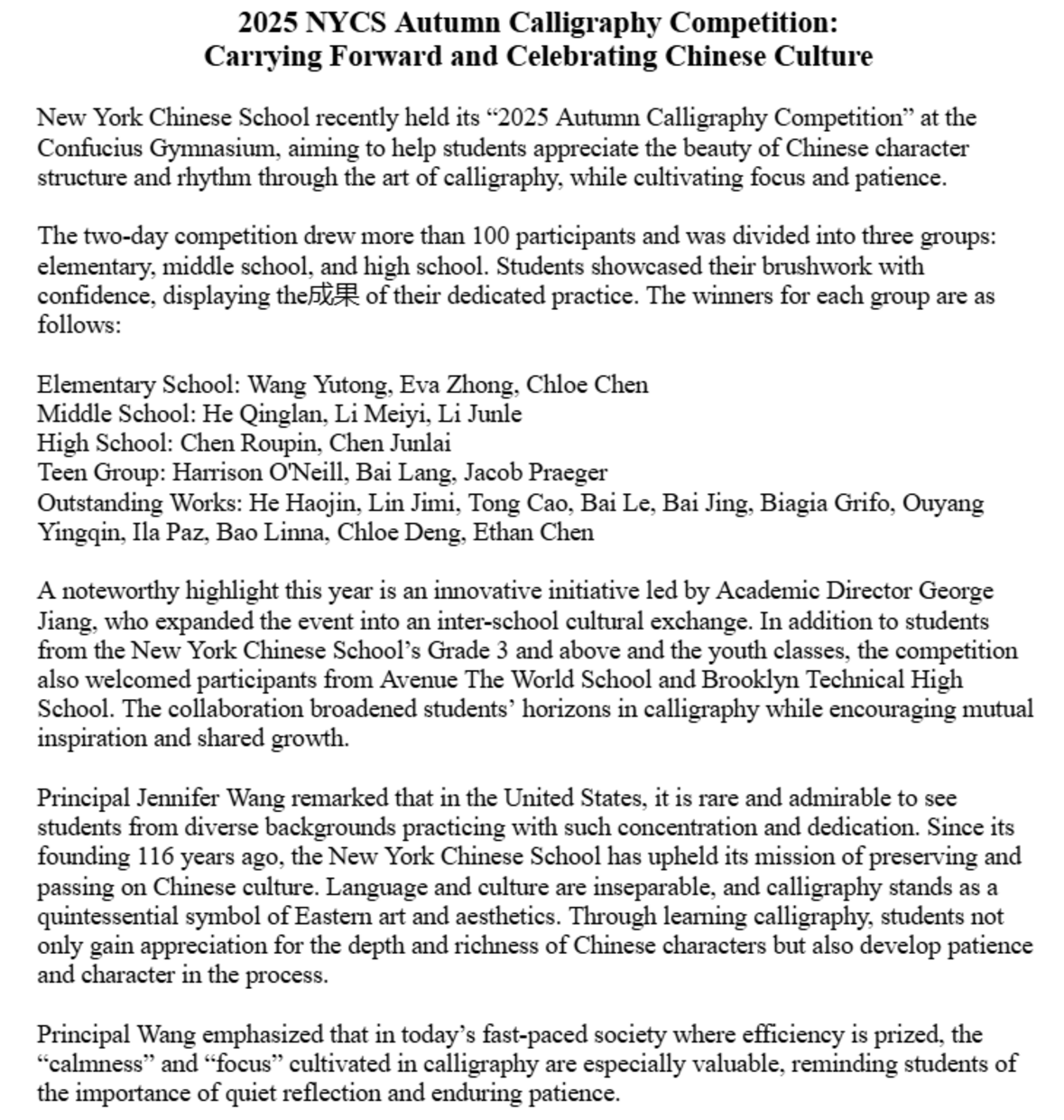 Type your paragraph云吞食品公司再次展現對華社中文教育的長期承諾,捐贈五萬美元予由紐約中華公所設立的「畢業鼓勵基金」(Fortune Graduation Fund),以獎勵紐約華僑學校的優秀畢業生,並鼓勵他們持續學習中文、認識自身文化,為社區培養具備語言能力與文化認同的華裔新一代。
