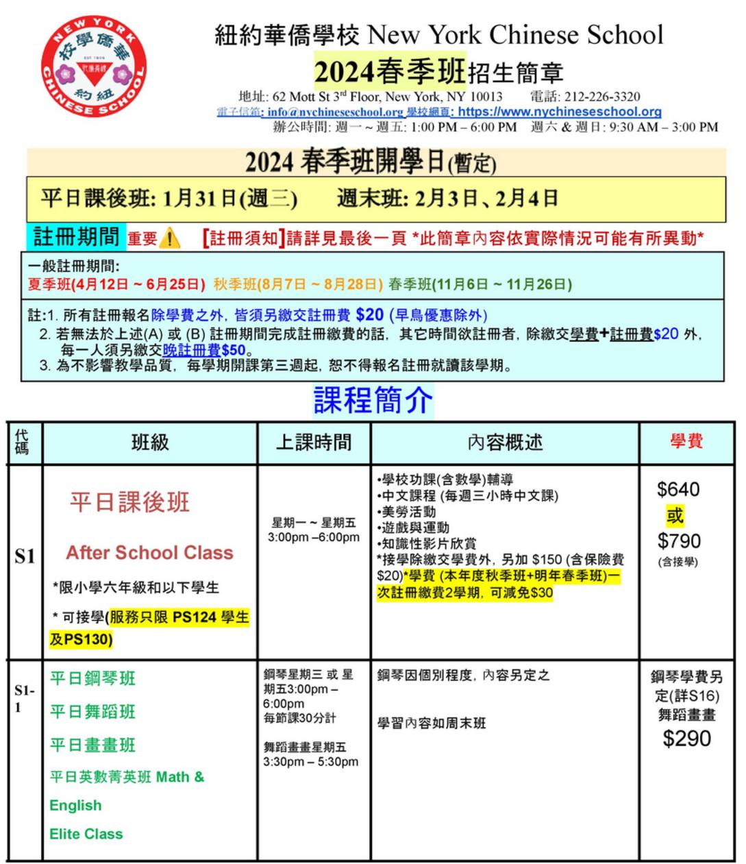 2024 Summer Registration 夏季註冊